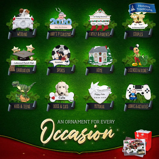 Personalized Large Family of 12 Ornament 2025 | Free 24h Customization | Christmas Ornaments for Tree | Custom Gift Wrapped Green Glitter Keepsake for Twelve Persons