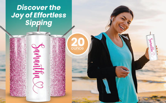 Personalized Tumbler with lid and straw | 20oz Stainless Steel Insulated | Custom Gifts | Double Wall Coffee Cups for Hot, Cold Drinks | Pink tumblers Glitter effect with Name | 20oz Cup