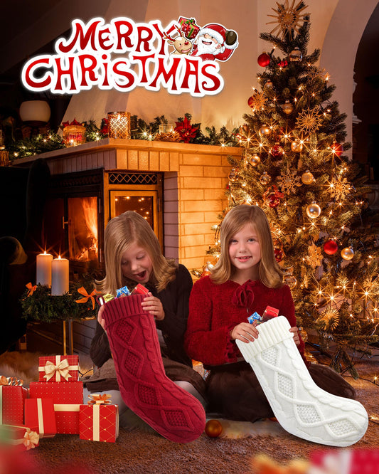Personalized Christmas Stockings - 18 Inches Hanging Stockings with DIY Snowman Name Tags, 4 Pack Large Size Knitted Stockings for Mantels, Christmas Tree Family Holiday Decor, Red and White