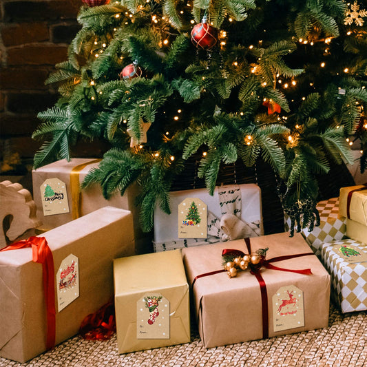 120 Pcs Tags, Self Adhesive Gift Tag Stickers, Holiday Labels for Presents, Santa, Snowman, Tree, Reindeer, 2 x 3 Inch, Kraft Paper Stickers