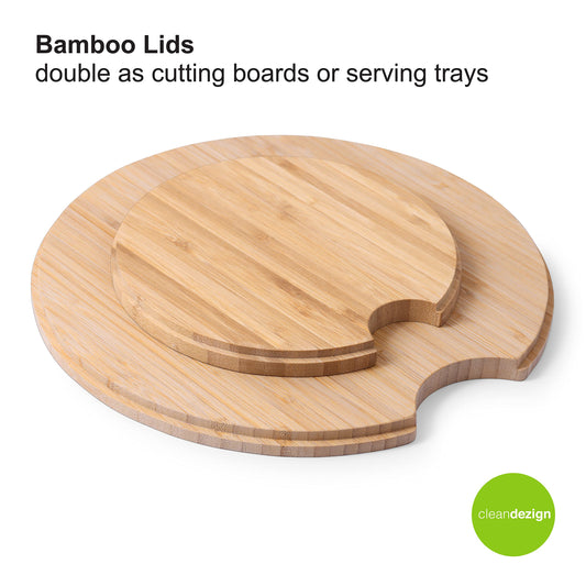 11.5" Extra Large Salad and 8" Serving Bowl with Wooden Lid and Servers - Bamboo Fiber Wood Mixing Bowl Set with Utensils & Wooden Cutting Board Top for Fruits, Vegetable Salads, Pasta (8pc Set) Grey