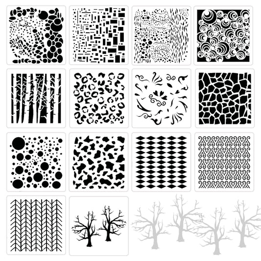 14 Pcs Layering Mixed Media Stencils Leopard Diamond Spirals Cubist Templates Geometric Patterns Stencils for Painting on Walls Canvas DIY Craft Scrapbooking Stamp Decor Card Making (6x6inch)