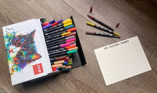 150 Colors Dual Tip Brush Pens Art Markers Set, Fine Tip Markers for Adult Coloring, Bullet Journals, Drawing, Lettering Calligraphy HO-150B