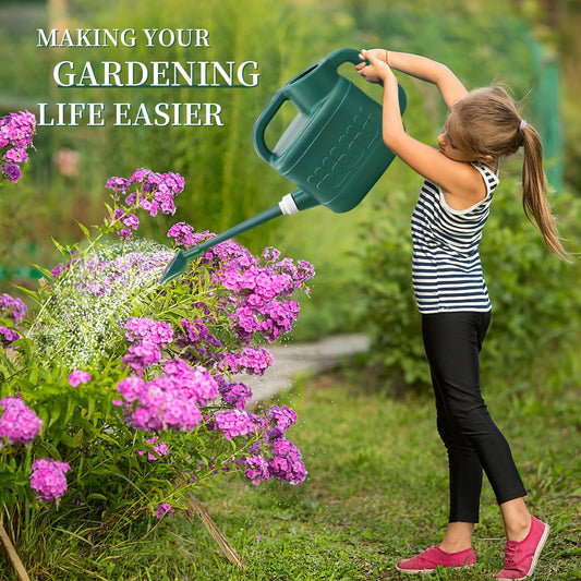 2 Gallon Watering Can for Outdoor Plants with Removable Long Spout and Stainless Steel Sprinkler Head, Large Plastic Watering Can for Garden Flowers Plants