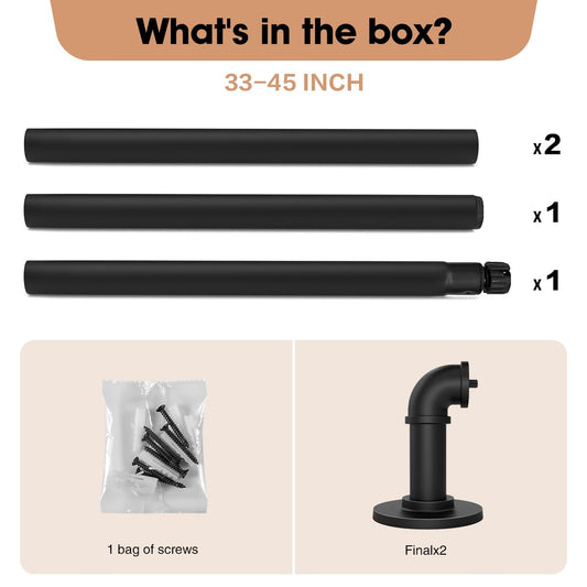 1 Inch Industrial Curtain Rods for Windows 28 to 48 Inches, Blackout Wrap Around Curtain Rod, for Indoor and Outdoor, Simple Design, 33 to 45 Inches, Black