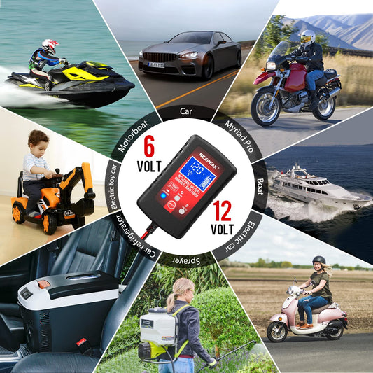 2-Pack Smart Fully Automatic 6V 12V Battery Charger Maintainer for Car, Marine, Motorcycle, Lawn Mower