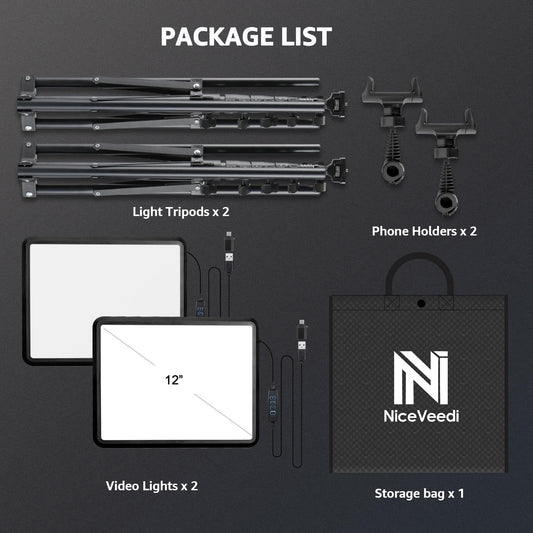 2-Pack LED Video Light Kit, NiceVeedi Studio Light, 2800-6500K Dimmable Photography Lighting Kit with Tripod Stand&Phone Holder, 73" Stream Light for Video Recording, Game Streaming, YouTube