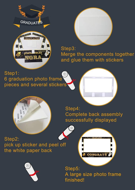 2025 Graduation Photo Props Frame Black and Gold Large Size High School College Graduation Selfie Favors Decorations