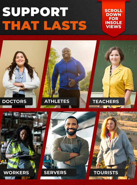 220+ lbs Plantar Fasciitis High Arch Support Insoles Men Women - Orthotic Shoe Inserts - Boot Work Shoe Insole (L, Black)