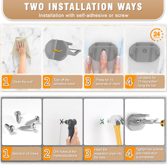 22 Pack Adhesive Hat Hooks for Wall, Super Strong Hat Rack for Baseball Caps, Hat Organizer Display for Home Decor, Hat Hangers Holder for Wall, Door, Closet, No Drilling - USA Patented (Gray)