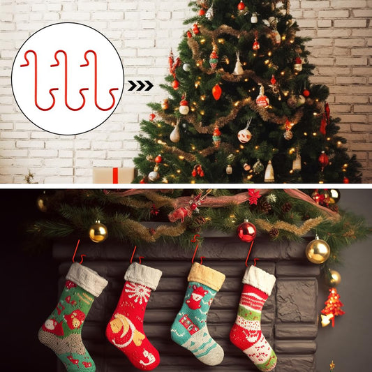 100 Pack Ornament Hooks, Christmas Ornament Hooks for Christmas Ornaments Metal Wire Hooks Ornament Hangers with Storage Box for Xmas Tree Outdoor Decorations, Red