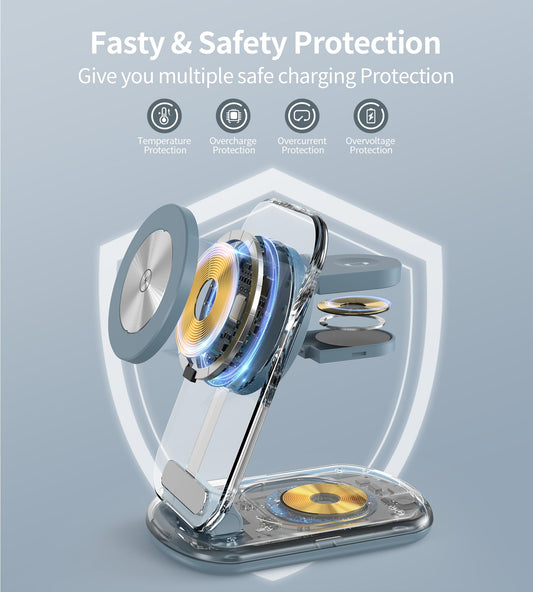3 in 1 Magnetic Wireless Charging Station for Apple Devices, Fast Foldable Travel Mag-Safe Charger Stand with Night Light for iPhone 16 15 14 13 12 Series, Apple Watch/AirPods Pro