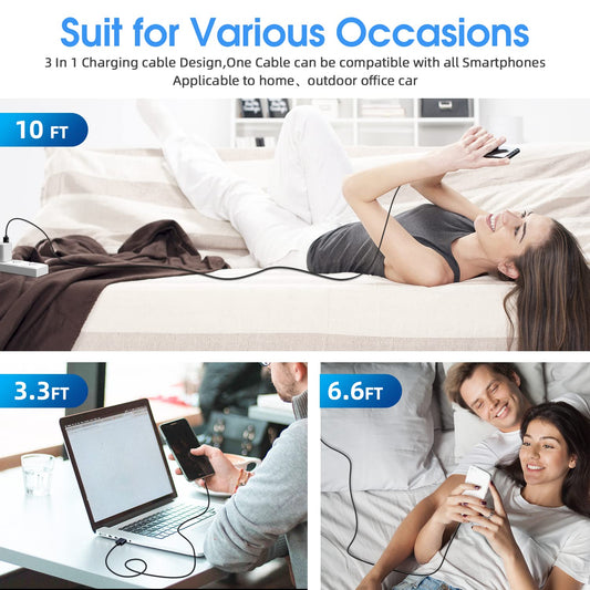 3 in 1 Magnetic Phone Charger - 5-Pack Rotating Magnetic Charger Cable with LED Light, Nylon Braided Cord for Micro-USB, USB C and i-Product Devices - Black