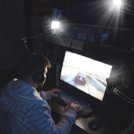 3 Packs 70 LED Video Conference Lighting with C Clamp Arm Stand/Color Filters, Obeamiu 5600K USB Studio Light Photography Lighting Kit for Live Game Streaming, YouTube, Zoom Call, Collection Portrait