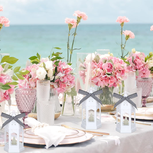 3 Pieces Farmhouse Decor Mini Lanterns with LED Candle Rustic Tiered Tray Decor Centerpieces Hanging Ramadan Wedding Lantern with Eucalyptus and Buffalo Plaid Vintage Battery Operated(White)