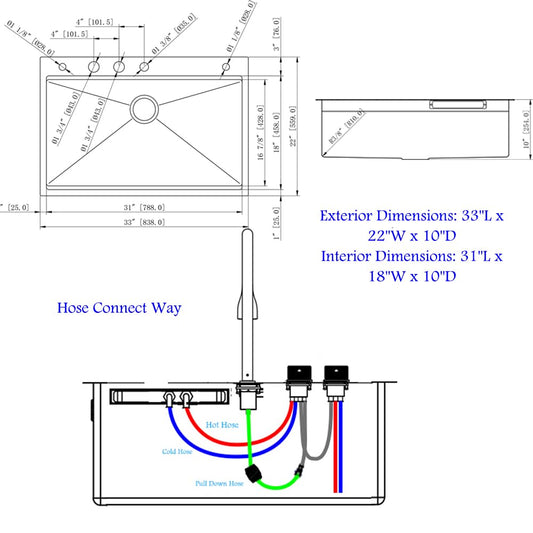 33 Inch Black Drop In Kitchen Sink Workstation - VOKIM 33x22-Inch Drop In Sink Stainless Steel Top Mount 16 Gauge Single Bowl 10'' Deep Handmade Kitchen sink with Cutting Board& Strainer