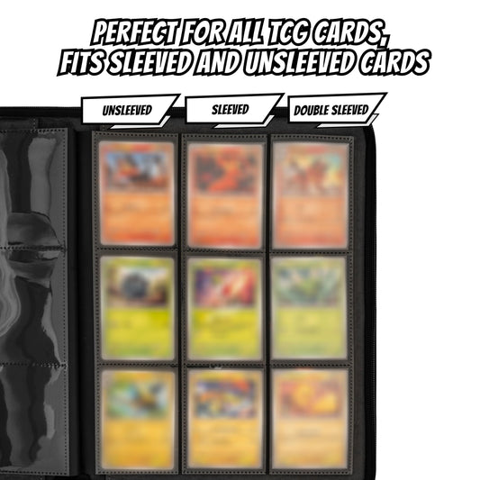 3D Card Binder for Pokemon - Stunning 3D Raised Elemental Design in PU Leather with Zipper - Includes 9 Pocket Pages for 360 Cards. Great Sleeve Album/TCG Holder/Trading Card Collection Book Gift.