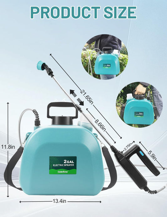 SideKing 2 Gallon Battery Powered Garden Sprayer, Powful Electric Backpack Sprayer, Water Pump Sprayers for Weed, Lawn, Yard, Pesticide, Plant, Fertilizer, Plant, Herbicide, Watering, Cleaning