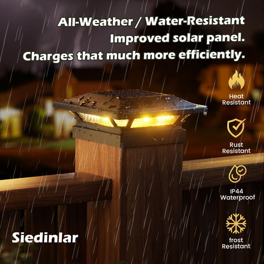 SIEDiNLAR Solar Post Lights Outdoor 2 Modes LED Deck Fence Cap Light for 4x4 5x5 6x6 Posts Patio Garden Decoration Warm White/Cool White Lighting Black (10 Pack)