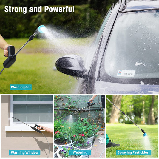 SideKing Battery Powered Sprayer Wand, 23.6inch Electric Sprayer Telescopic Watering Wand with 16.4FT Hose, Rechargeable and Portable Spray Wand for Gardening (3 Nozzles)