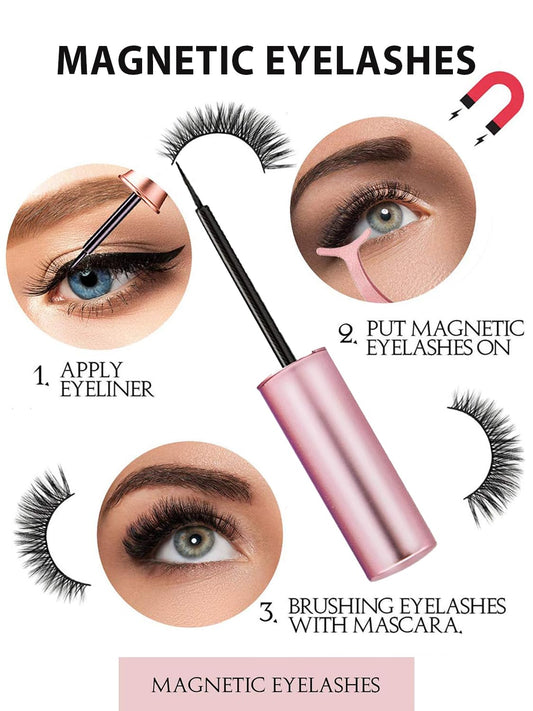 Sikkis Magnetic Eyelashes with Eyeliner - Magnetic Eyelashes Mink Look Kit, Mixed 3D Mink Reusable False Lashes with Applicator, No Glue Needed -5 Pairs