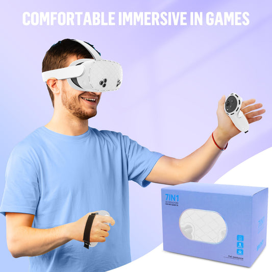 Silicone Cover Set Compatible with Meta/Oculus Quest 3s Accessories, Silicone Face Cover, Controller Grip Cover, Camera Lens Protector, VR Shell Cover, Protective Lens Cover, Not Fit Quest 3