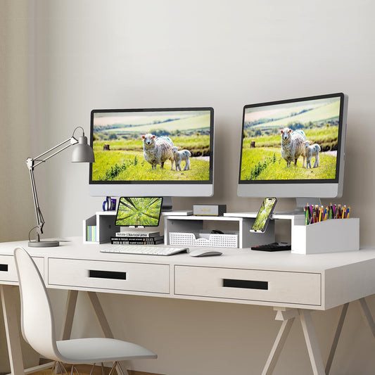 Simple Houseware Desk Dual Monitor Stand Riser with Drawer, White