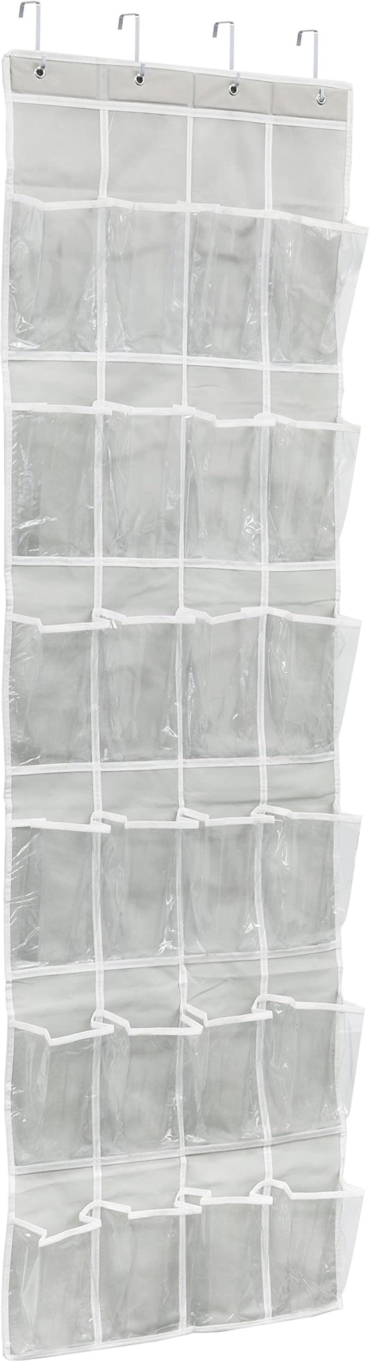 Simple Houseware 24 Pockets - Crystal Clear Over The Door Hanging Shoe Organizer, Gray (64'' x 19'')