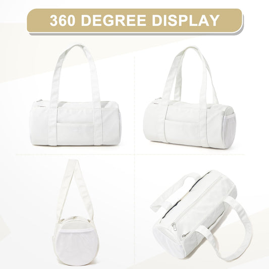 Small Gym Bag 13.78"x6.7"x6.7" Carry On Duffel Bag, Mini Personal Item Bag Lightweight Tote Weekender Overnight Bags for Women and Men Sports, Traveling, Swimming, Yoga (Cream Color)