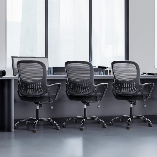 SMUG Home Office Computer Desk Chair, Ergonomic Mid-Back Mesh Rolling Work Swivel Task Chairs with Wheels, Comfortable Lumbar Support, Comfy Arms for Bedroom, Study, Dorm, Student