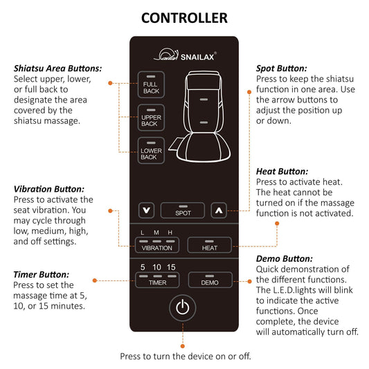 Snailax Back Massager with Heat, Memory Foam Chair Massage Pad, 5 Massage Modes & 2 Heat Settings, Seat Massager for Office Chair,Home Use