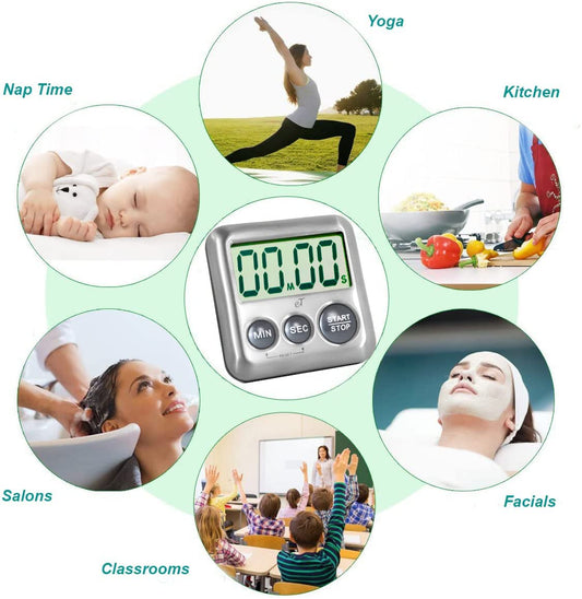 Elegant Digital Kitchen Timer Stainless Steel - Charcoal -Strong Magnetic Back - Kickstand - Loud Alarm - Large Display - Auto Memory - Auto Shut-Off (Charcoal) by eTradewinds