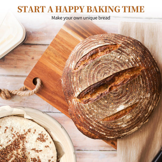 Superbaking Banneton Bread Proofing Basket, Sourdough Bread Baking Supplies, Round 9 Inch Sourdough Starter Kit, Proofing Basket for Baking, Bread Making Supplies Tools, Banneton Basket Gift Set