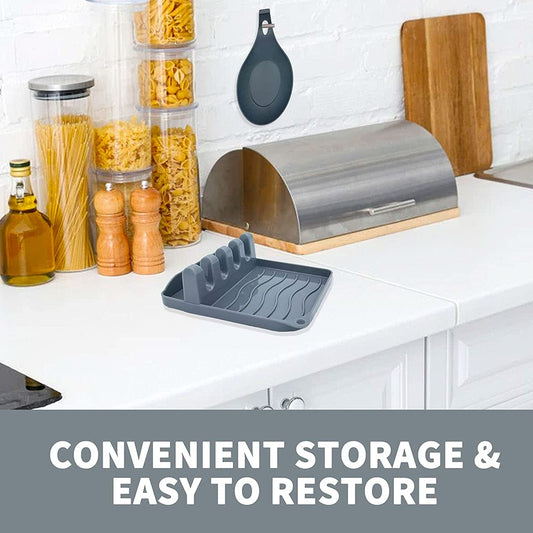 LSVGOE 2 Pack Multiple Utensil Spoon Rest with Drip Pad Non-Slip Heat Resistant Kitchen and Grill Spoon Holder for Spatula, Ladle, Tongs, Kitchen Gadgets, and Cooking Accessories (Silver Gray)