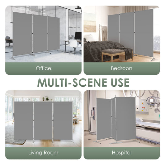 RANTILA 3 Panel Room Divider, 6 Ft Tall Folding Privacy Screen Freestanding Room Partition Wall Dividers, 102''W x 20''D x 71''H, Grey