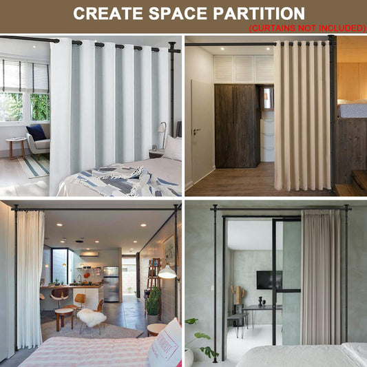 Room Divider, No Drilling Curtain Rod Wall Divider for Space Partition, Adjustable 4-10ft(H) 28-70inch(W) Heavy Duty Floor to Ceiling Tension Rod Dividers Temporary Privacy Separator Window Rods Black