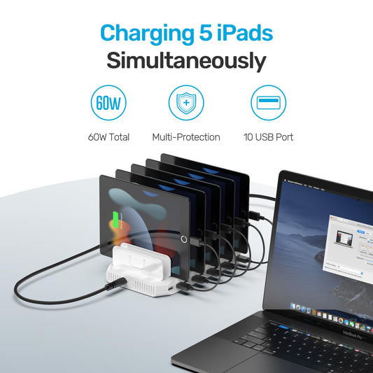 【5PCS】 Unitek Multi Charging Station, 10-Port USB Charger for Multiple Device with SmartIC Tech and Adjustable Dividers, Organizer Stand Compatible with iPad, Tablet, Kindle, iPhone - 5PCS, White