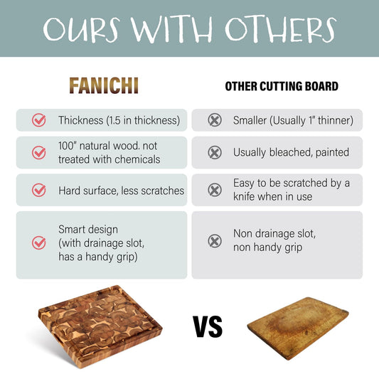 XL Acacia End Grain Wood Cutting Board (20x15x1.5in) Acacia Wooden Cutting Board, Butcher Block, Chopping Board - Reversible Multipurpose For Kitchen with Juice Groove, Cracker Holder & Inner Handles.