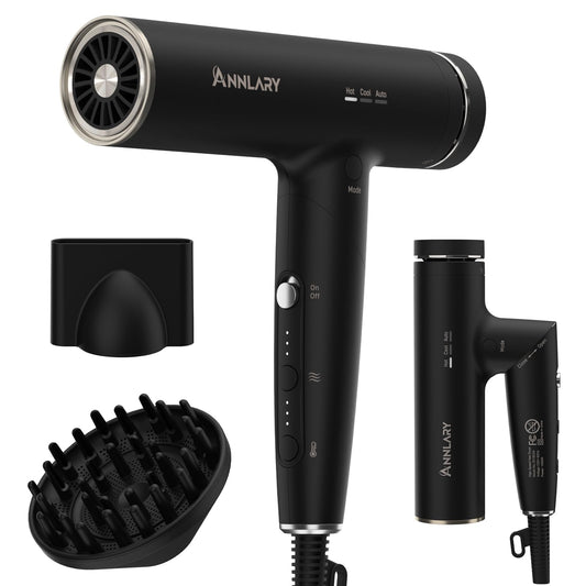 ANNLARY Plasma Ion Hair Dryer with Diffuser for Curly Hair, 110000 RPM Professional High Speed Blow Dryer with Plasma Ion, 1500W Foldable Travel Hairdryer with 6.5 Ft Cord Fast Drying for Women Men
