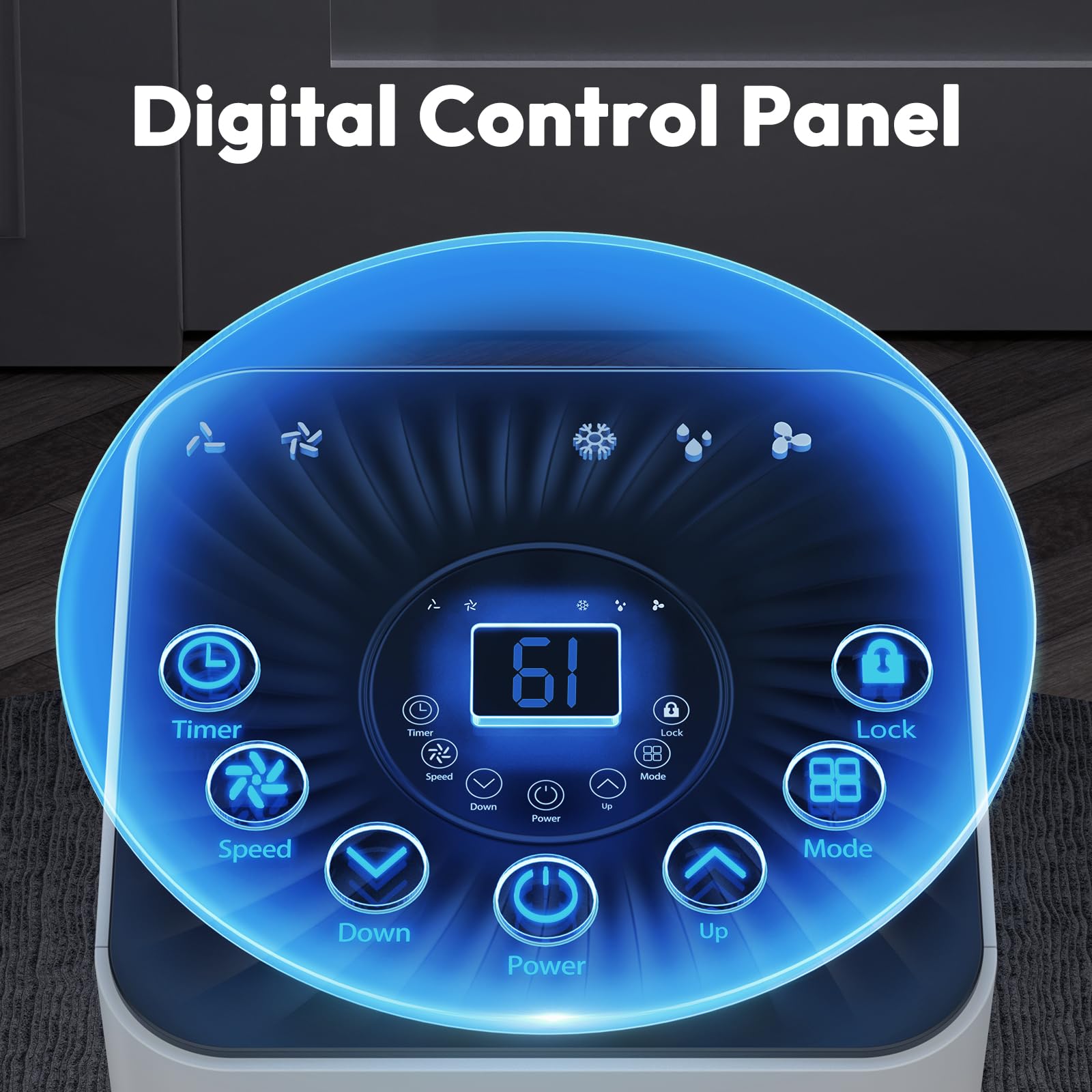 • 【HIGH INTELLIGENT OPERATION】Our ac unit portable feature an easily-read deluxe PCB display and a big soft-touch control panel, which could be effortlessly switched the power, mode, fan speed, temperature, timer and lock setting. Besides it, you could operate this portable room air conditioner via remote control