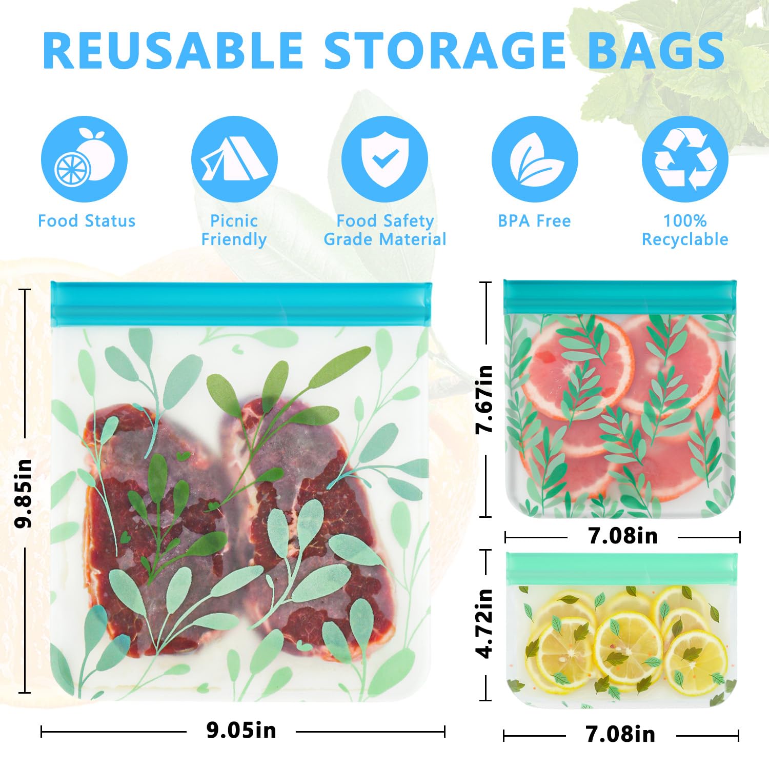 • [MULTIPLE USES & VERSATILE] Our reusable food storage bags are perfect for storing a variety of foods such as sandwiches, fruits, vegetables, and snacks. They're also great for marinating meat, and for organizing home, travel, and makeup items. These bags are designed to be reusable, durable and reliable, making them the perfect option for any household or on-the-go lifestyle