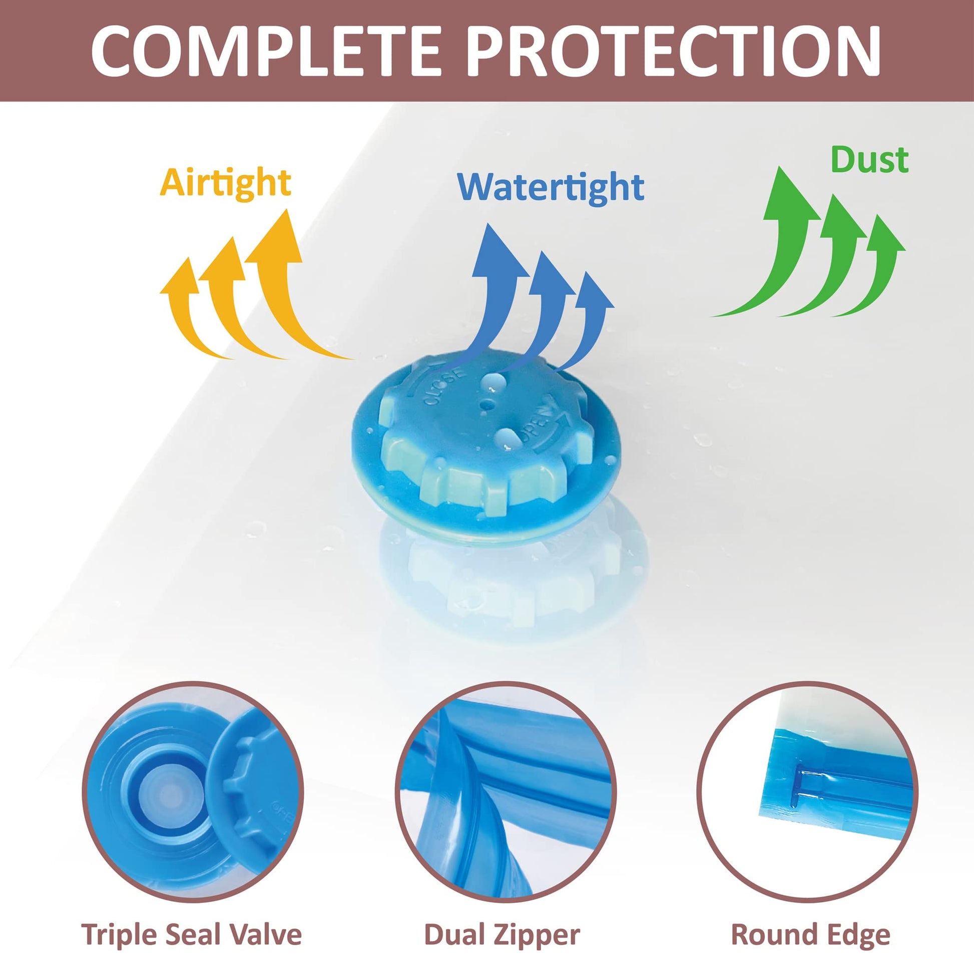• Lasting effective protection: the space bags use robust double-zip sealer & triple sealed turbo valve to vacuum the air out. Simply vacuum out the air and the vacuum bags will remain compressed & fresh.
