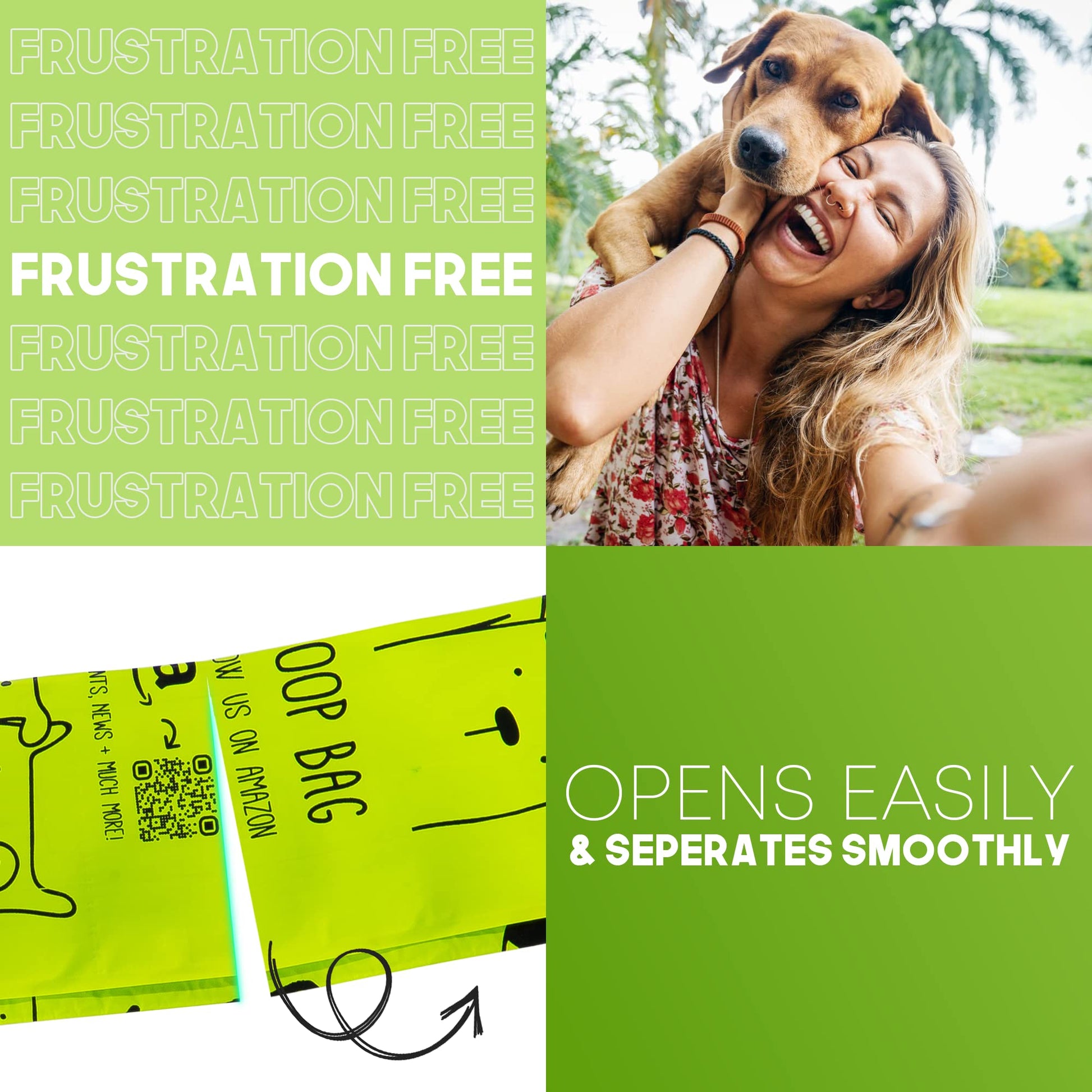 • EASY TO OPEN AND EASY TO TEAR - Other eco friendly dog poop bag's on the market seem to be a nightmare to open and so hard to tear! Why does being environmental and ecofriendly have to be so hard. Our biobags are an absolute breeze to open and tear apart even in the wettest of conditions!
