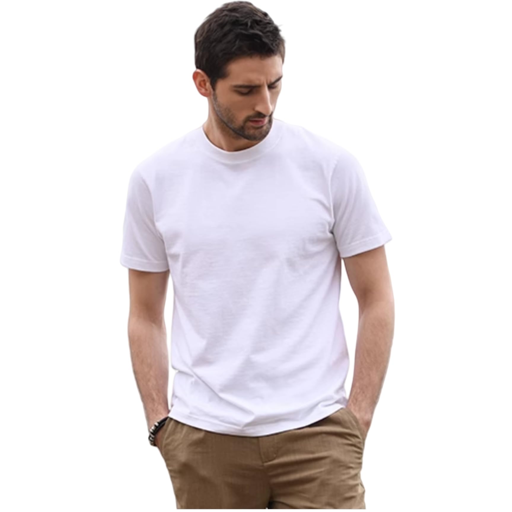 100% Cotton Men's White Plain Short Sleeve Crew Neck T-Shirt, Regular Fit Casual T Shirt Tops, Basic Tees, Tshirt