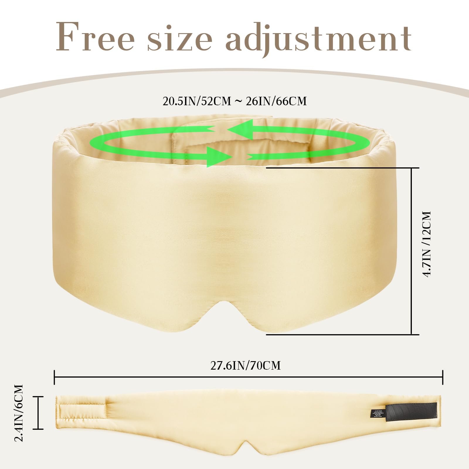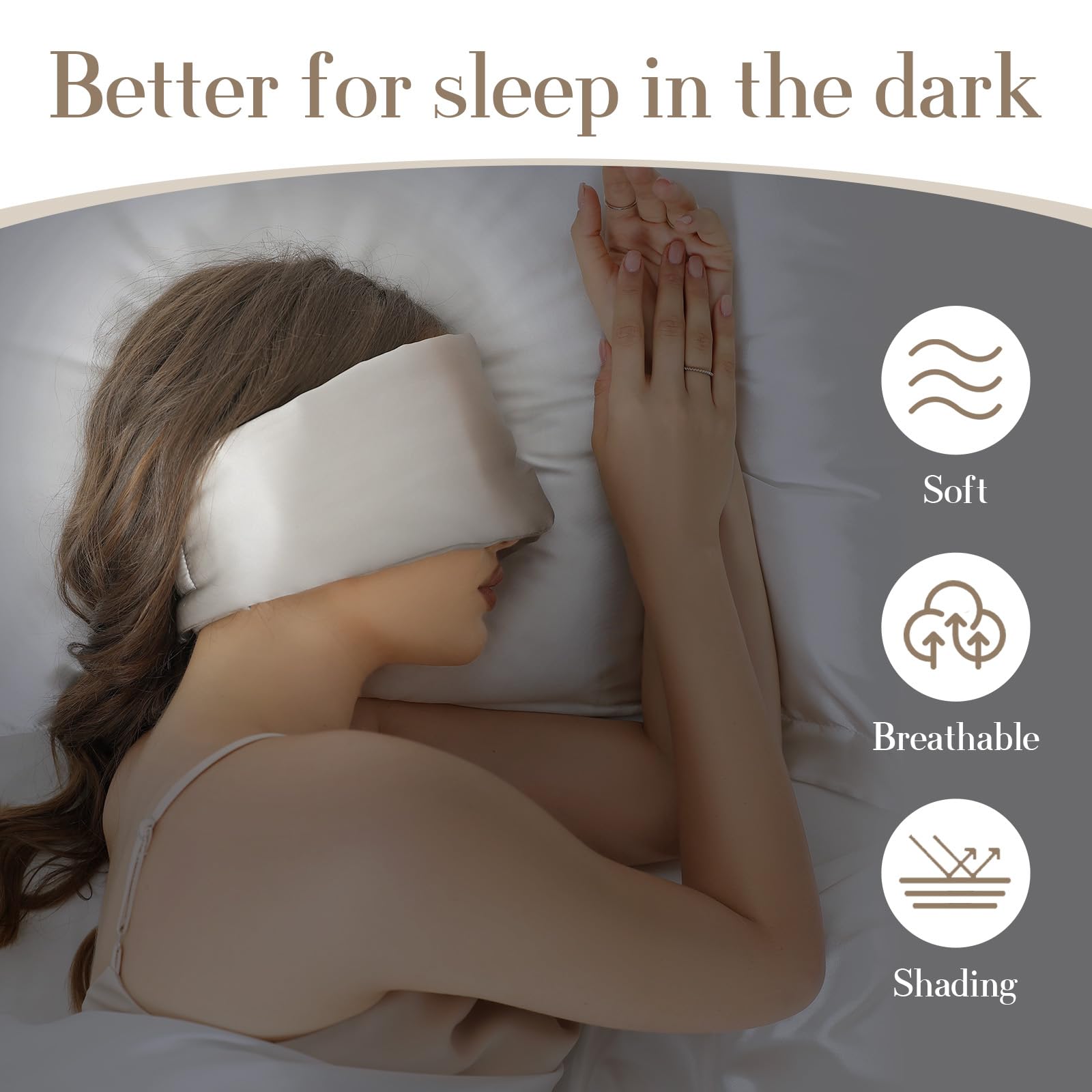 100% Mulberry Silk Sleep Mask Eye Mask for Women Man with Adjustable Band, for Side Sleeper Blackout Sleep Mask for Travel Rest and Office Large Size (Taupe)