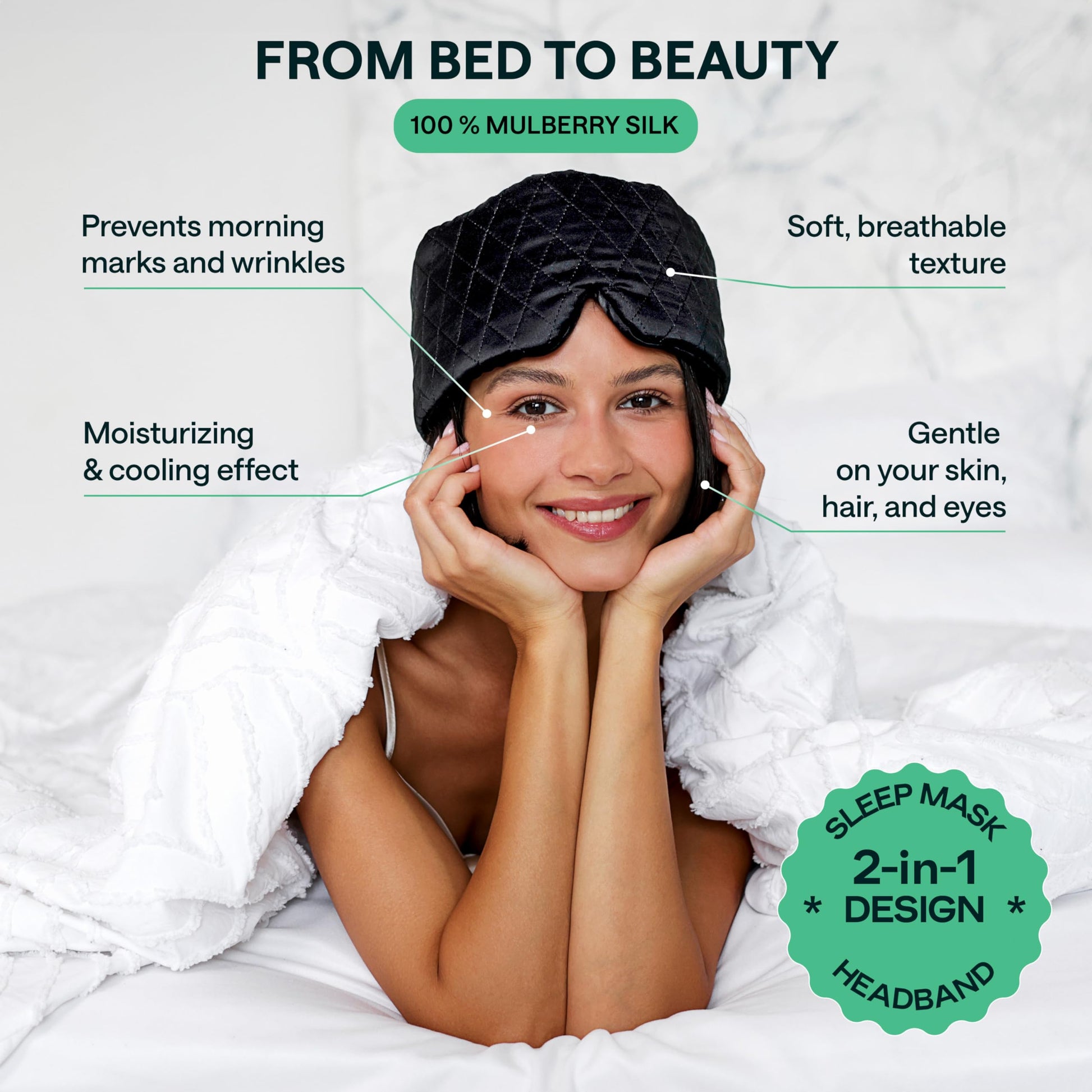 100% Mulberry Silk Sleep Mask for Women & Men - Black Blindfold Eye Cover with Adjustable Straps for Night Time Wrap - Sleep Headband for Washing Face - Blackout Eye Mask - Silk Hair Headband