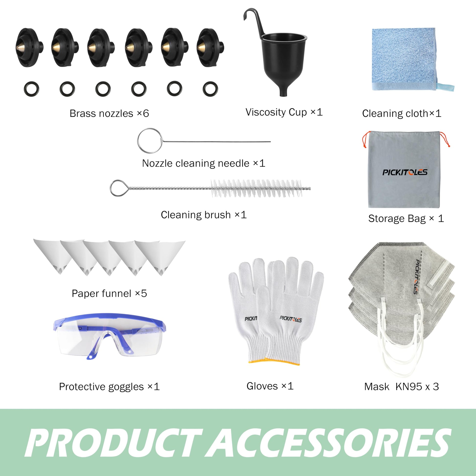 • 【Complete Accessories and Excellent Customer Service】 Your purchase includes the paint spray gun, 6x nozzles, 6x sealing rings, 5x paper funnel,1x viscosity cup, 1x nozzle cleaning needle, 1x clean brush, 1 pair gloves 1x protective goggles and 1x clean cloth . If you encounter any issues during use, our dedicated support team is ready to assist you, ensuring a hassle-free experience with your paint sprayer.