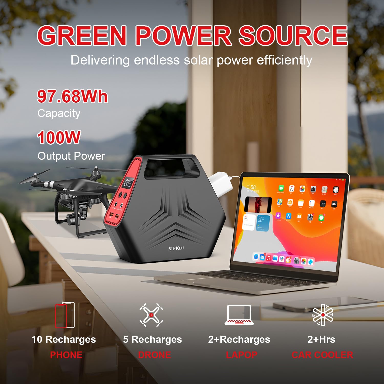 100W Solar Generator with 40W Foldable Solar Panel, Sinkeu 24600mAh Power Bank with AC Outlet for Home Use 97.68Wh Portable Power Station for Camping Hurricane Emergency