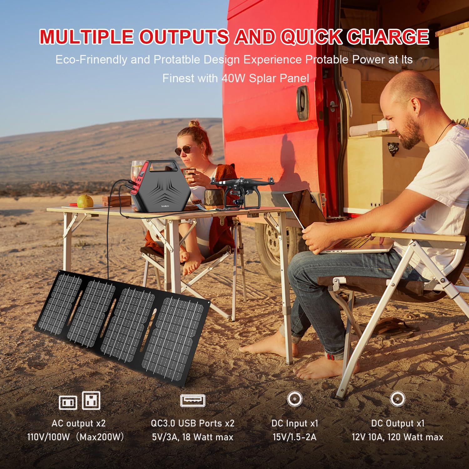 • Compact and Portable: Sinkeu solar generator and 40W solar panels are designed for mobility, both are compact in size. The power station is 7.5 x 6.5 x 3 in / 19 x 16.5 x7.5 cm and weighs 3.3 lbs. The solar panel is only 1.92bs, when unfolded (33.1 x 10.6 in), when folded(10.6 x 8.1 in), combination packs can be packed into your backpack for travel or hiking