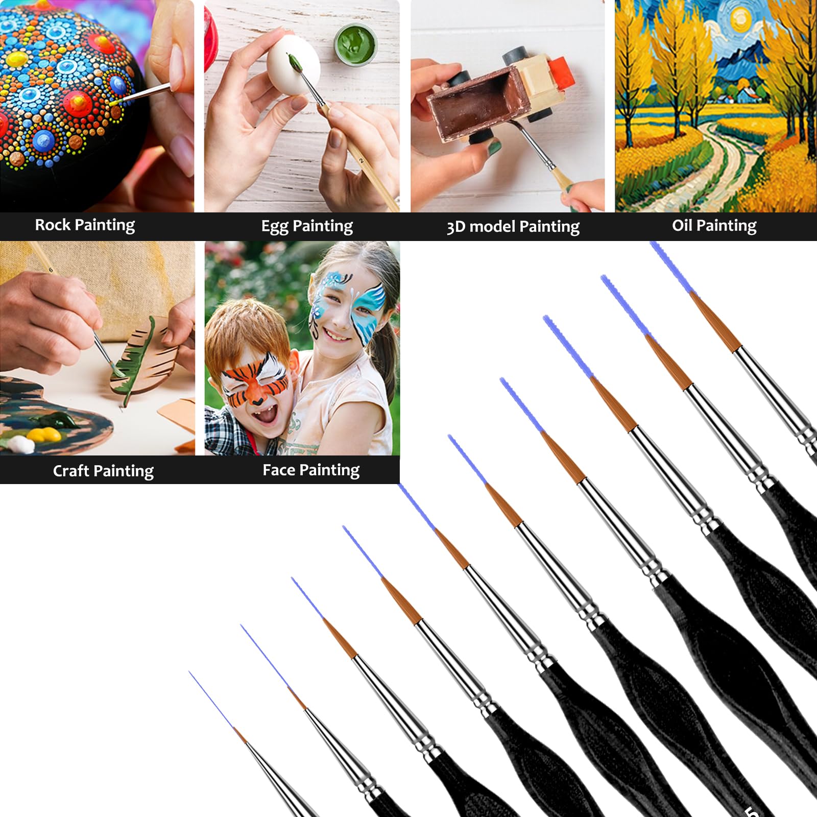 • Fine tiny paint brushes are great for all kinds of detailing, able to precisely reaching tight little openings or tiny points. Whether you're a beginner, hobbyist or a professional, this artist paint brushes will help you make excellent work of art.